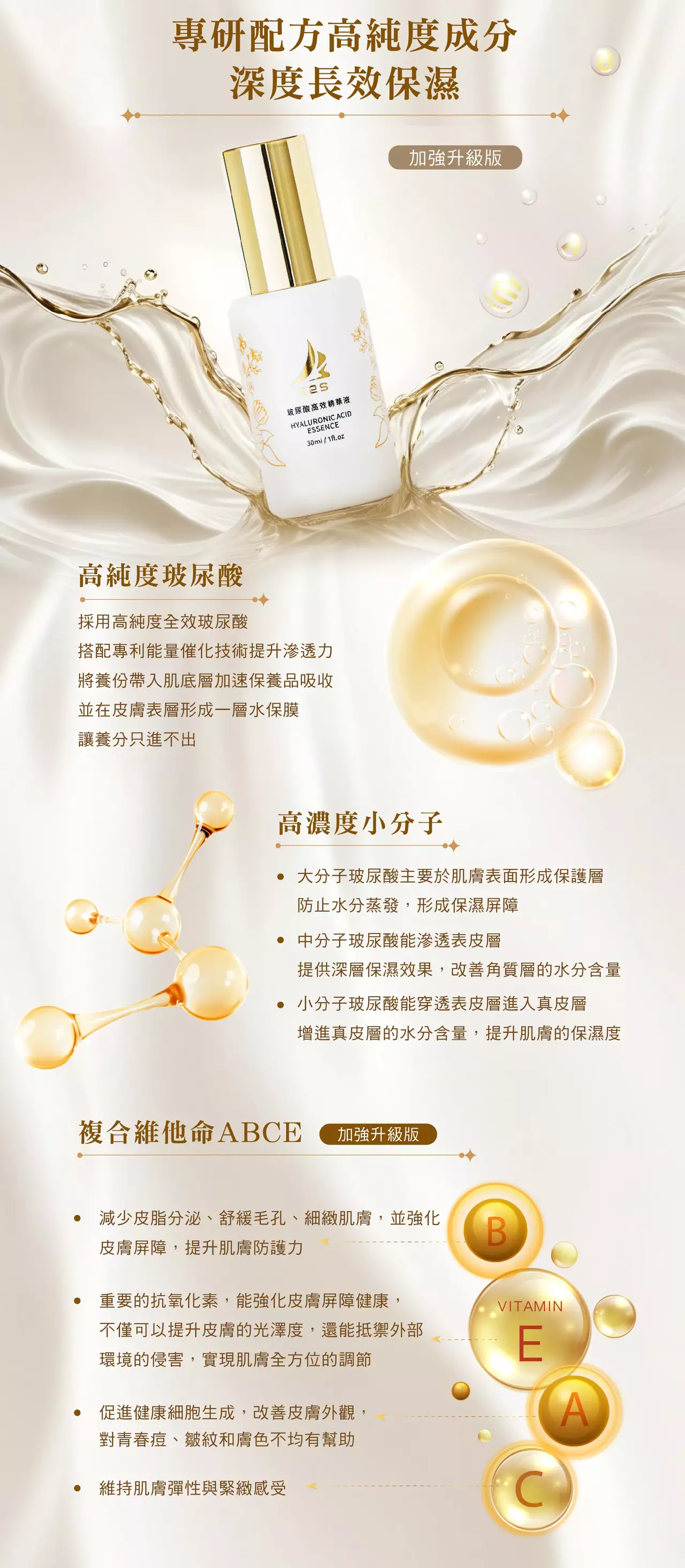 更加強升級複合維他命ABCE,促進皮膚生成,改善皮膚外觀,強化皮膚屏障!