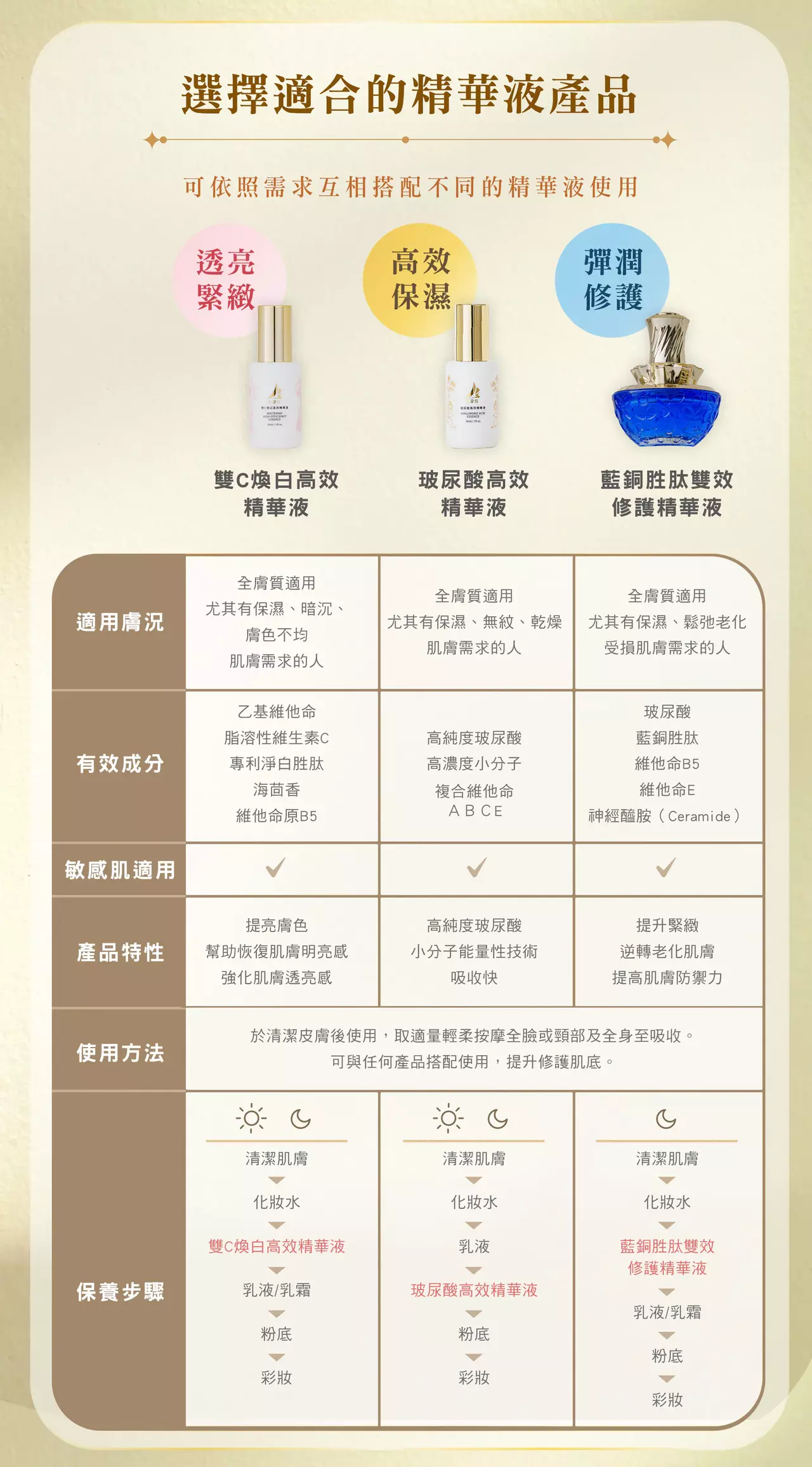 除原有添加保護皮膚抗氧化維他命E調製為高濃度玻尿酸精華液外,