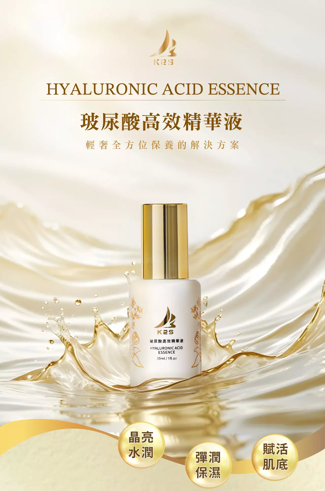 K2S玻尿酸高效精華液, 採用媲美醫美等級玻尿酸萃取液,