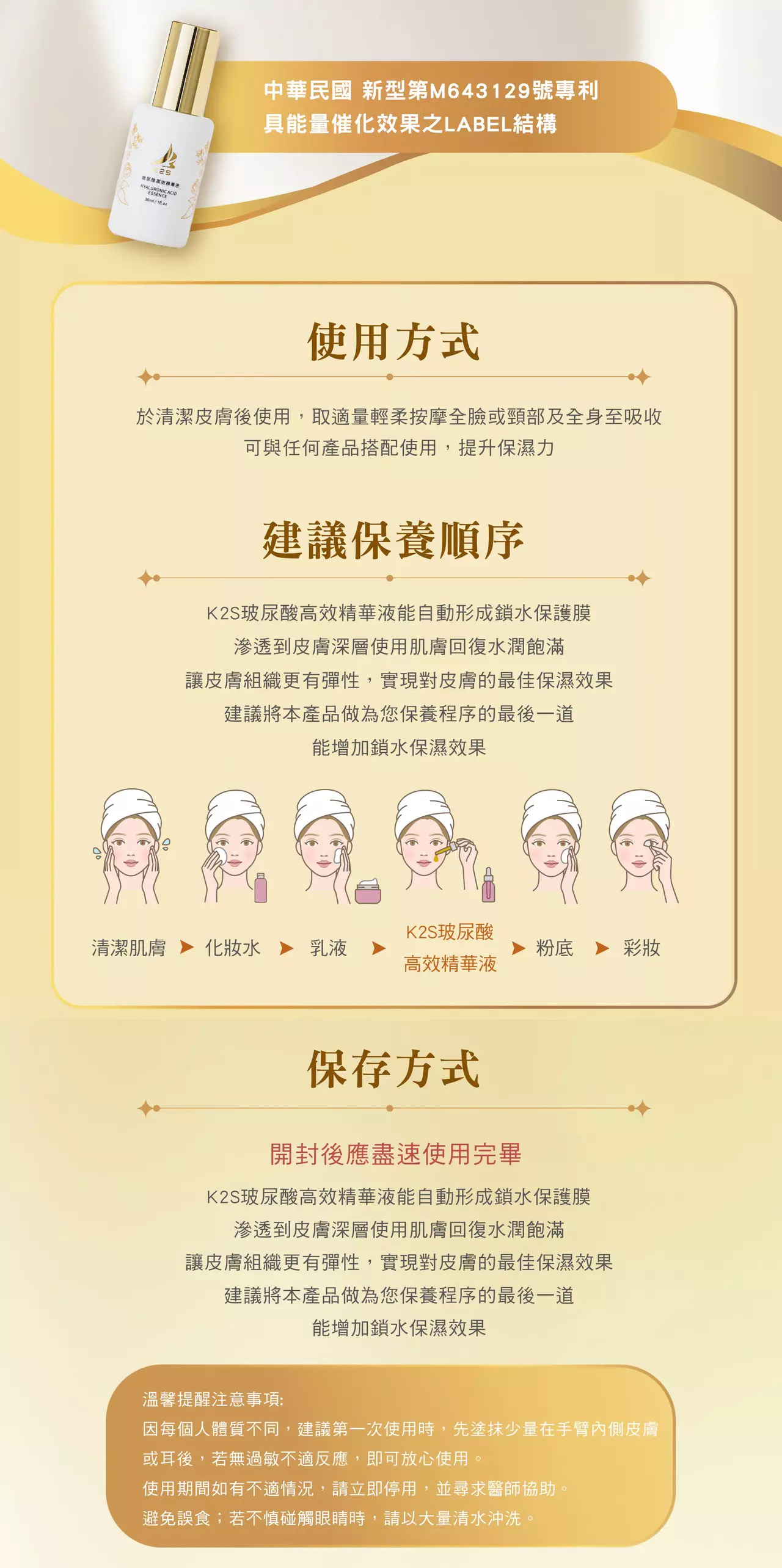 有助於於皮膚迅速吸收, 在肌膚表面形成含水薄膜, 幫肌膚快速補充含水量。